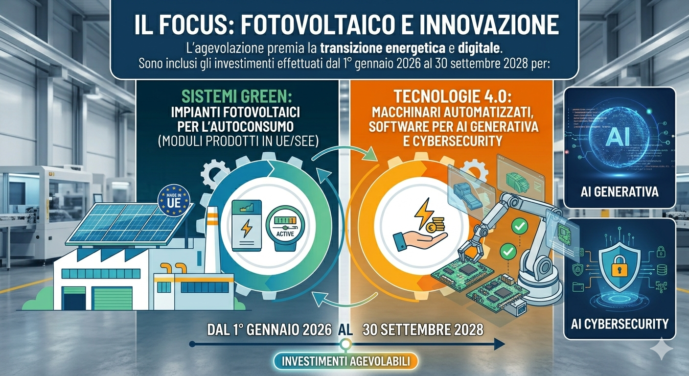Trasforma i tuoi investimenti in un potente vantaggio fiscale. Con la Legge di Bilancio 2026, l’Iperammortamento sostituisce i vecchi crediti d’imposta (Transizione 4.0 e 5.0) offrendo una maxi deduzione IRES fino al 180%